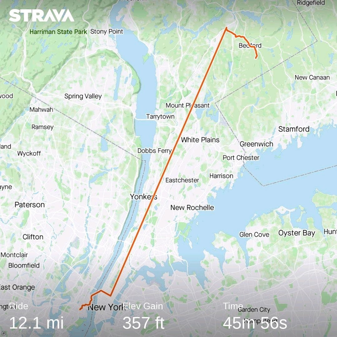 β2.5hrs door-to-door (similar to taking a car to Metro North then subway from Grand Central, and comparable to a 90-120mins drive), with less than an hour biking: