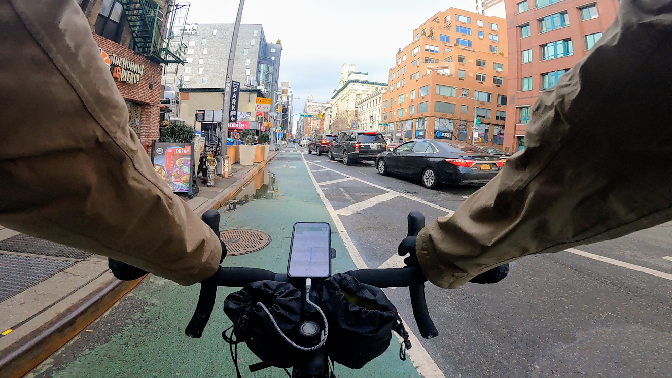 Having my phone mounted up front on my handlebars has been surprisingly useful. I typically have Google Maps' turn-by-turn directions or Strava's speedometer up while riding: